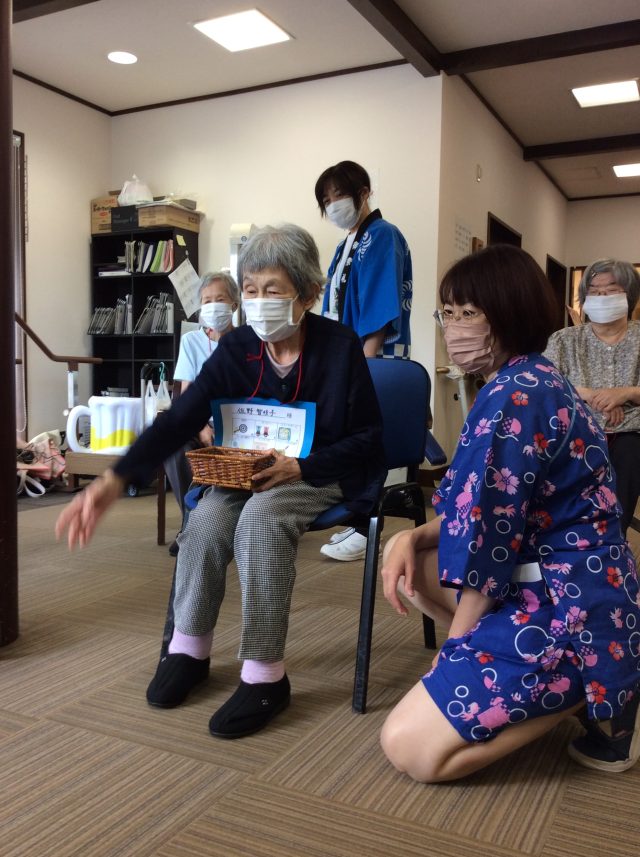 敬老の日イベントでは、スタッフも浴衣姿でいろんなゲームを