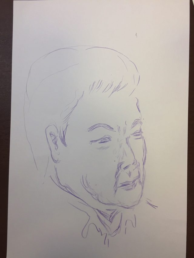 一生懸命に描きながら「全然似てない」「アカンワ」ハッハハハ、