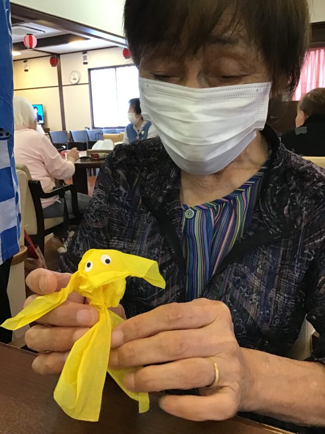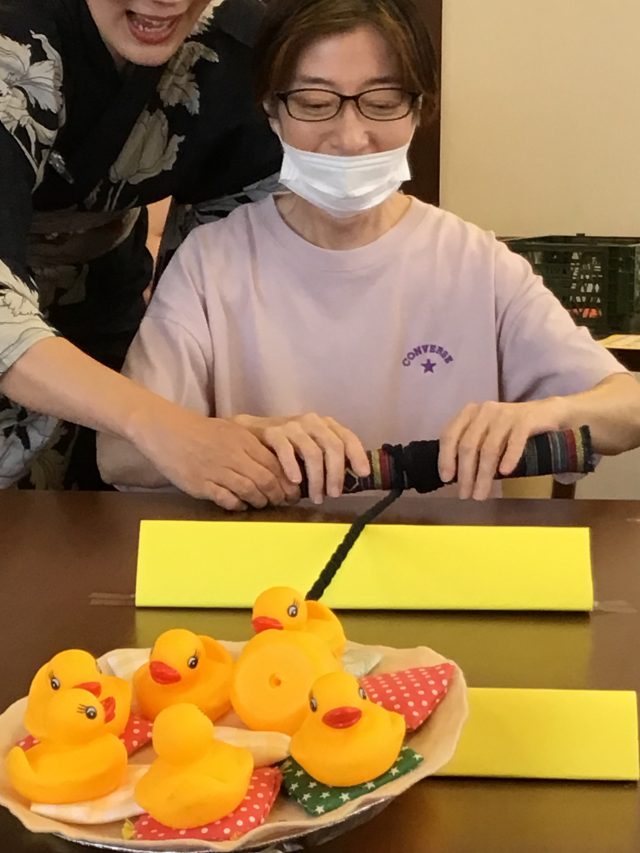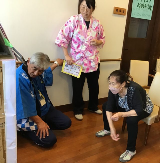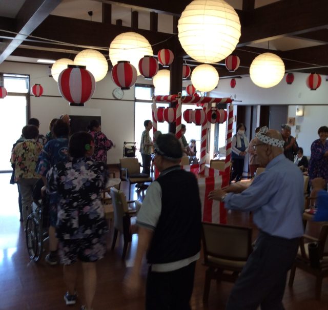 夏祭り前から利用者様も気になっていたやぐらを使っての