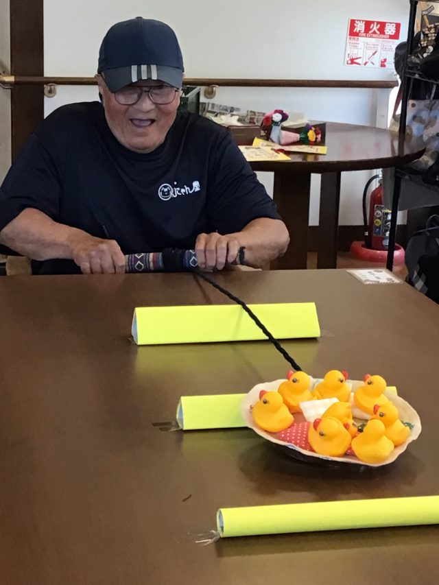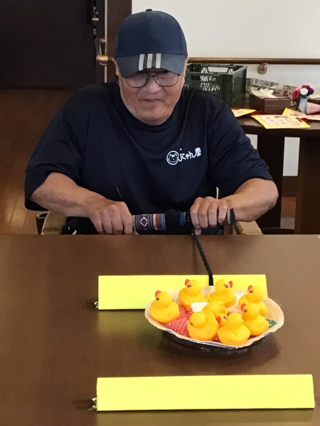 途中、障害物をこえるときにアヒルを皿から落とさない