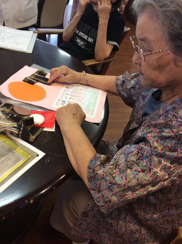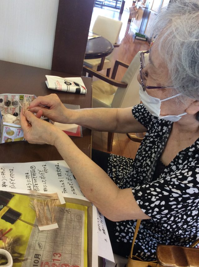 リボンを1本1本爪楊枝でほどいておられるところです。