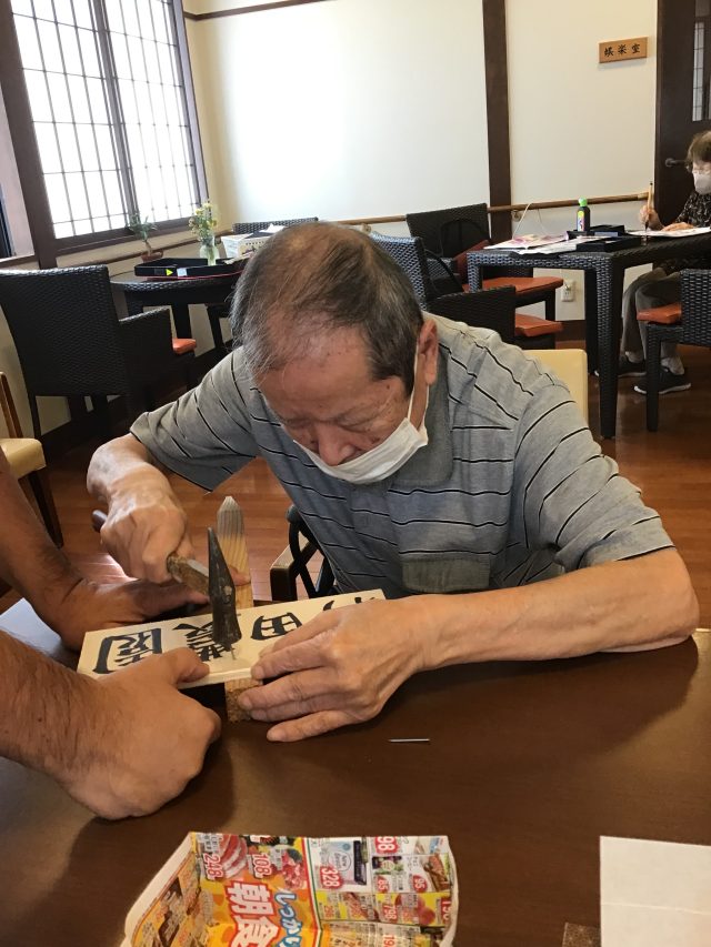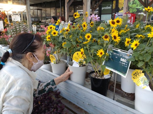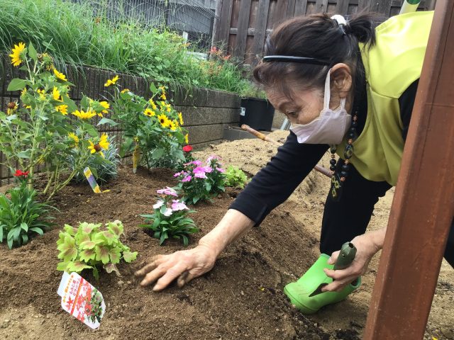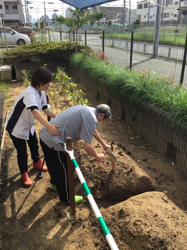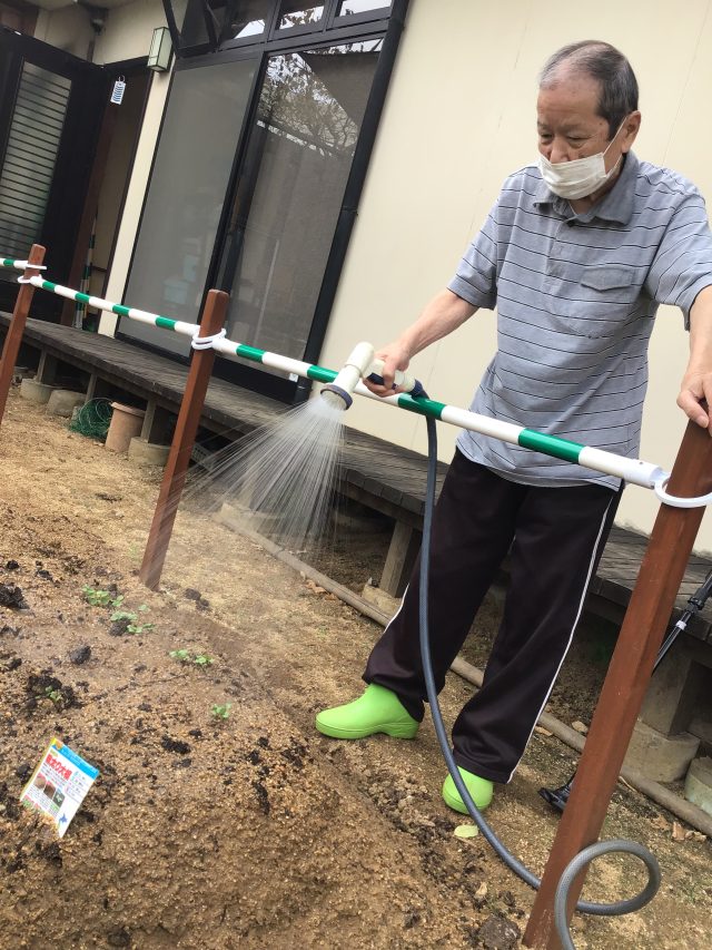 良いお天気に、利用者様と一緒に発芽大根を植えました