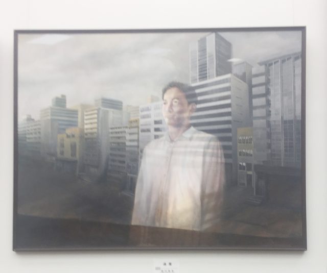 僕の作品の前へ。1,600点ほどの応募作の中から800点ほどの作品が