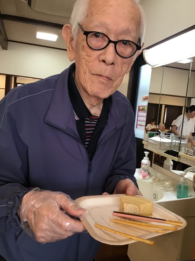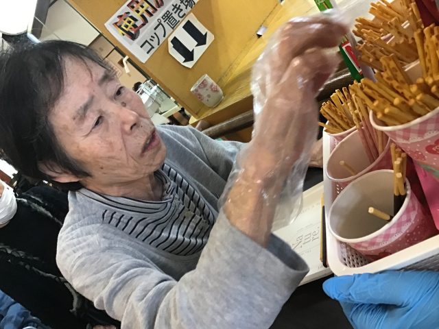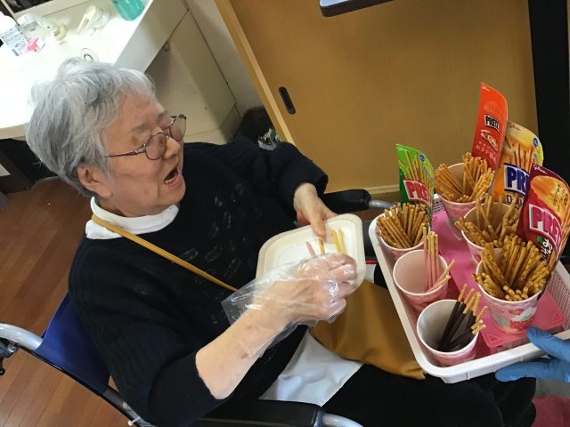 色んな種類のポッキーを利用者様に選んでいただいて、おやつの時間が