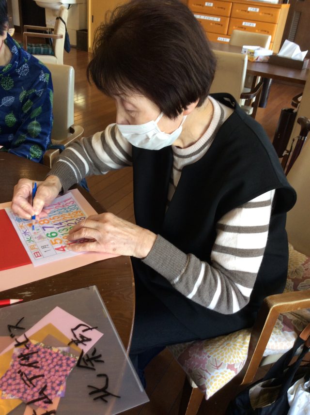 こちらは、カレンダーに色を塗っておられる