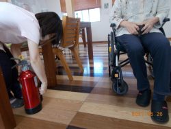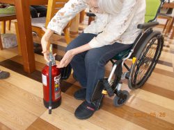 実際に利用者様にも消火器を持ってもらい、訓練しました。