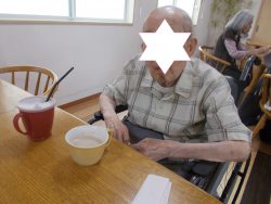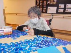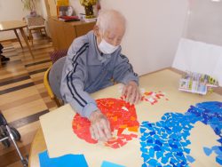 利用者様と一緒にちぎり絵しながら、