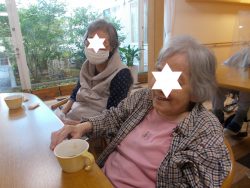 笑顔でコーヒーやケーキーを召し上がっていただきました。