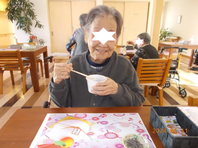 先日、鏡開きだったので「ぜんざい」の提供がありました(^^)