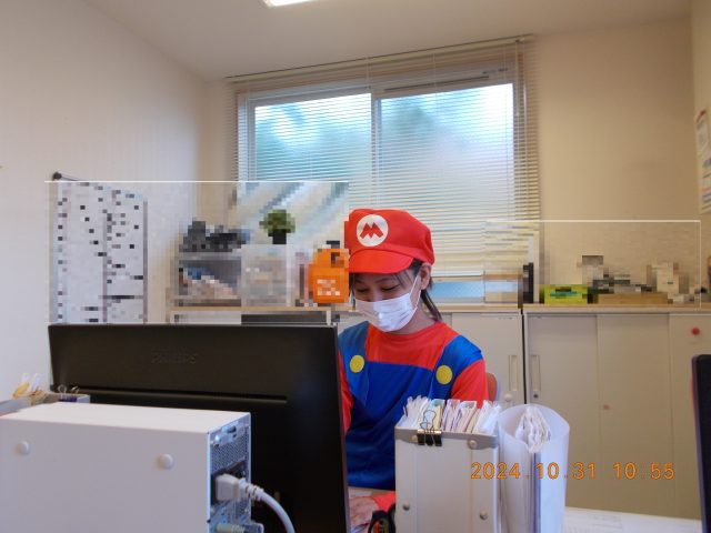 なのでラカーサ職員も子供たちが来られるまで仮装で仕事をしていました☺