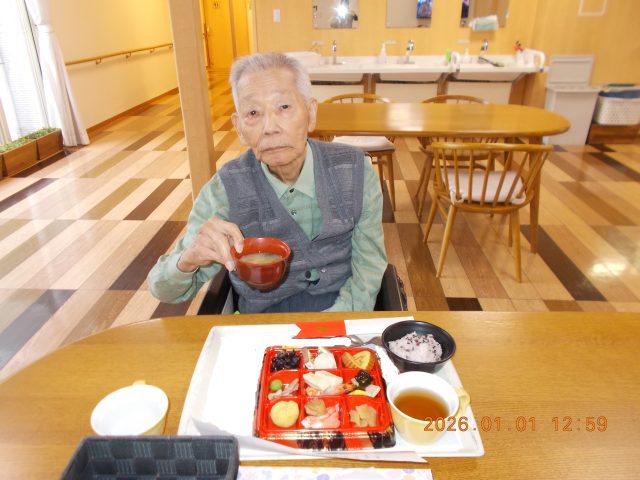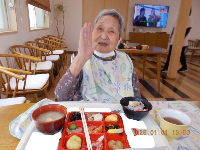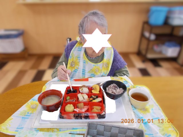 元旦の昼食は「おせち料理」の提供でした。