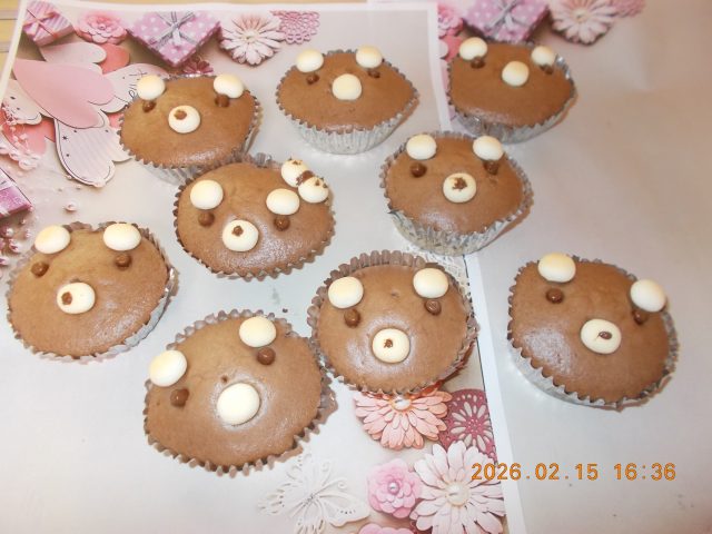 くまさんをモチーフにし「くまさんチョコ蒸しパン」を作り完成です👏