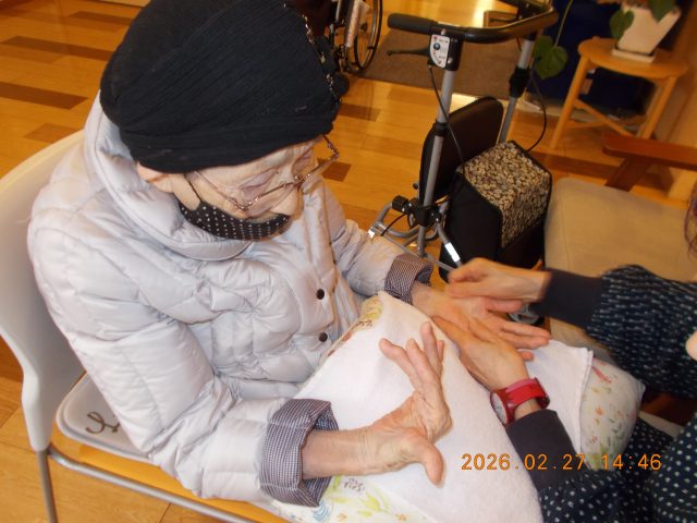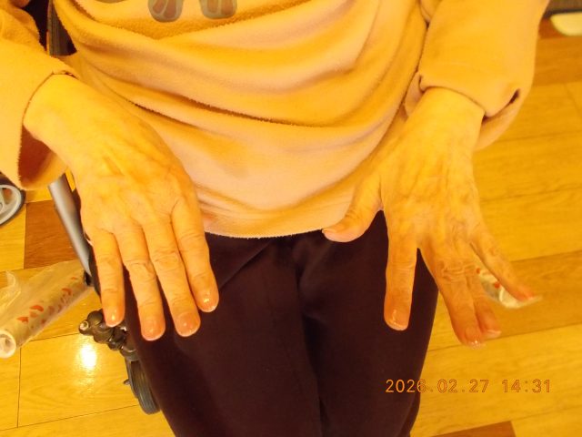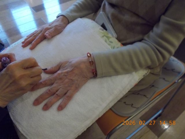 手を温めマッサージしてから爪に塗ってもらいました^^