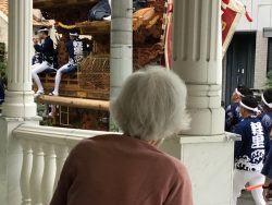 ドンドンと太鼓と笛の音が近づくと目を釘付けにして見ておられました。