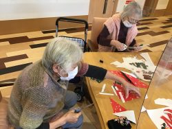 まずはご入居様と一緒に飾り物を作ってパーティーを準備しました。