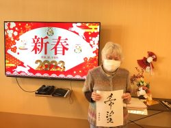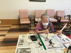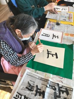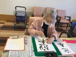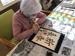 年が明けて最初のレクリエーションは毎年恒例の書初めからです。