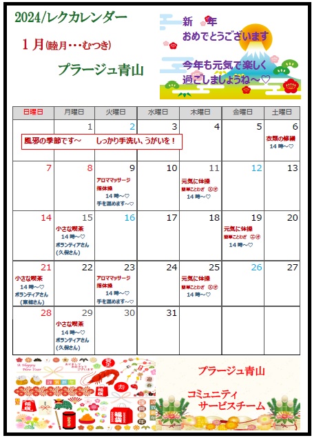 ❝1月のレクカレンダー❞