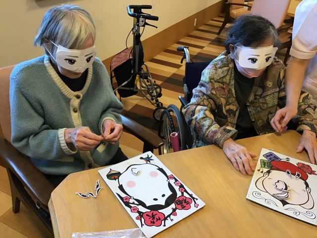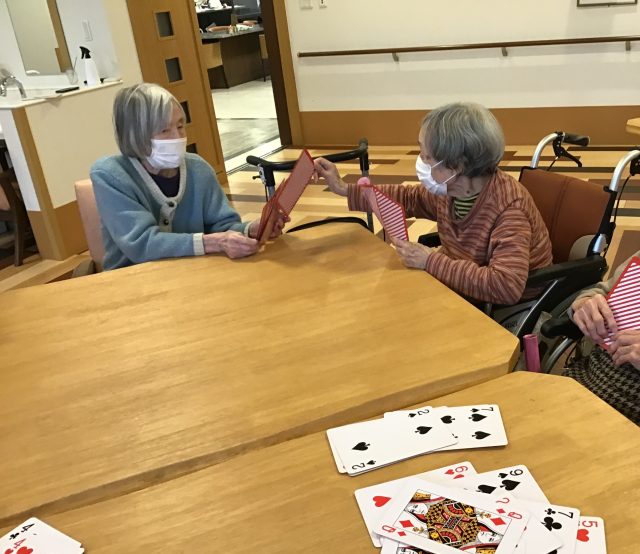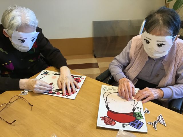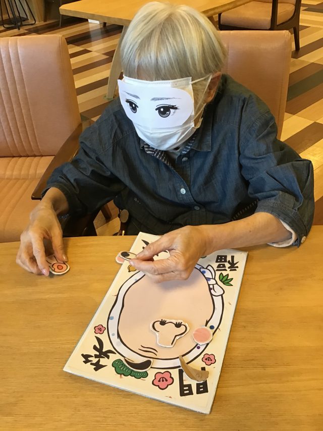 元旦には、福笑いやトランプをしてご一緒に過ごさせていただきました。