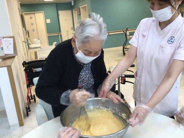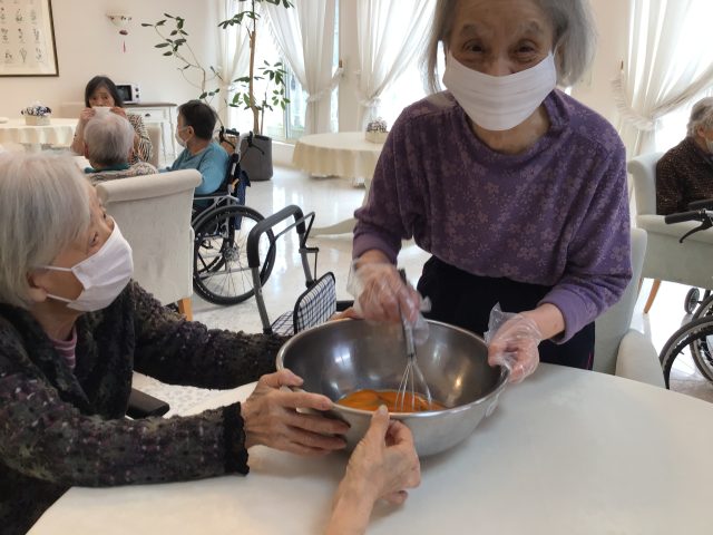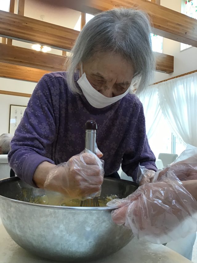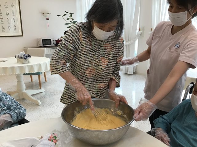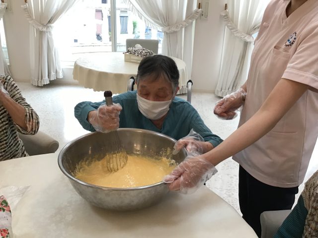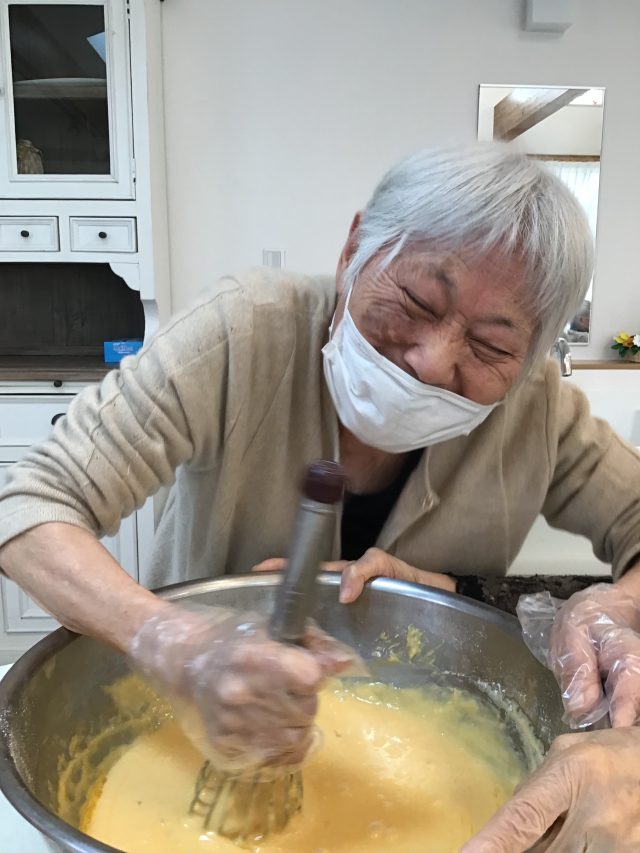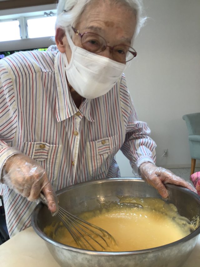 先日、利用者とご一緒にベビーカステラを作って食べて頂きました。