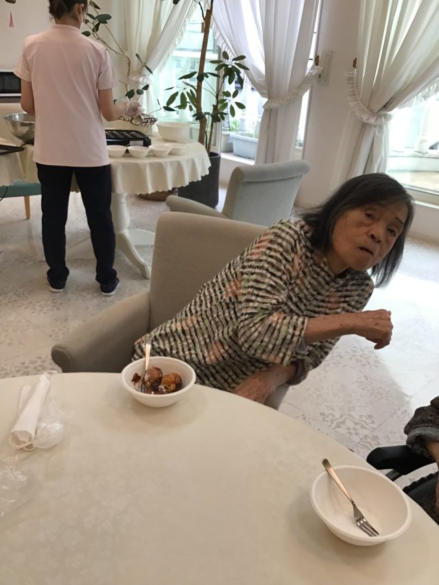 焼くのは危険なのでヘルパ-さん達が焼ました。