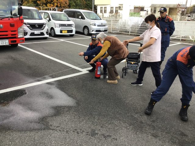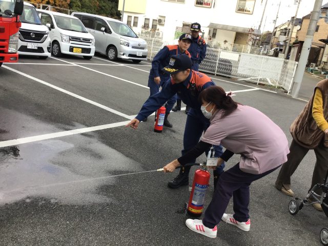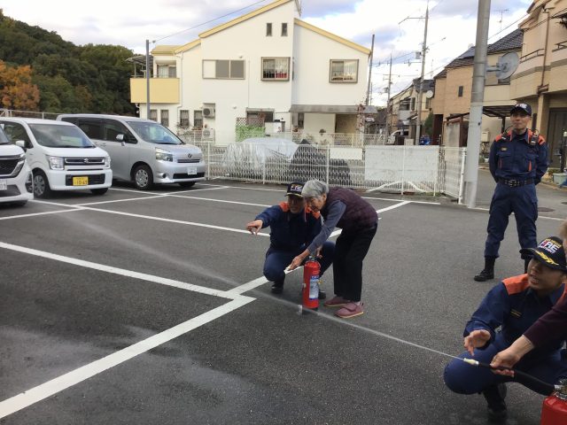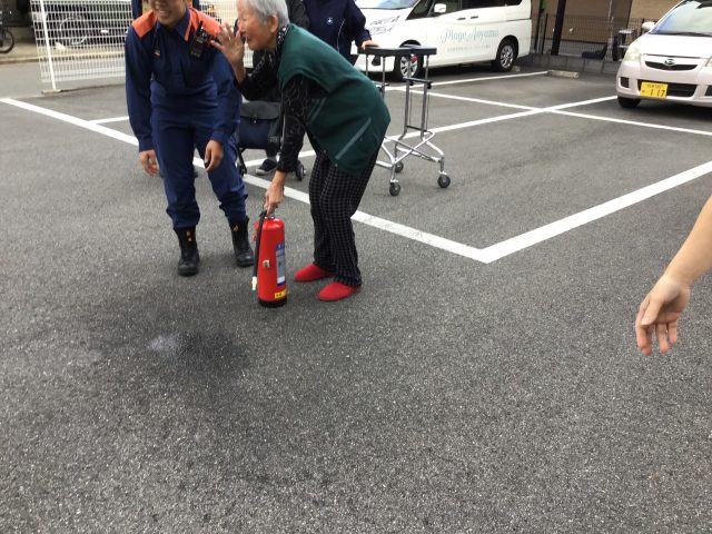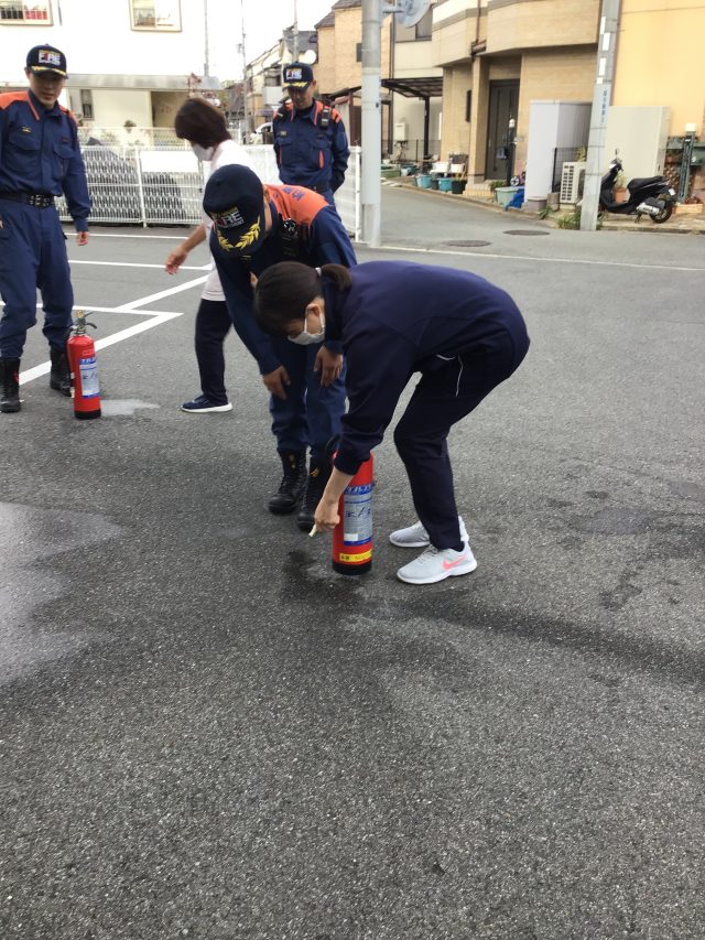 次に駐車場で消防隊の方から消火器🧯の使い方を教わりました。