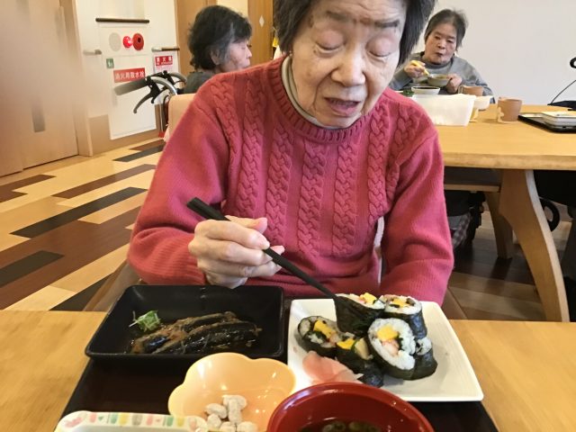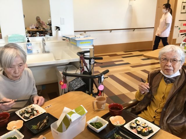 お昼ご飯のメニュウは、巻きずしが提供されました😊