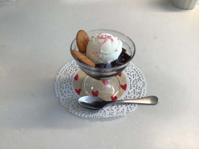 プラージュでは9月7日(日)コ-ヒ-ゼリーにアイスクリ-ムをのせて食べていただきました💕