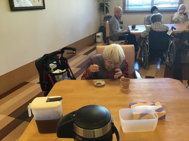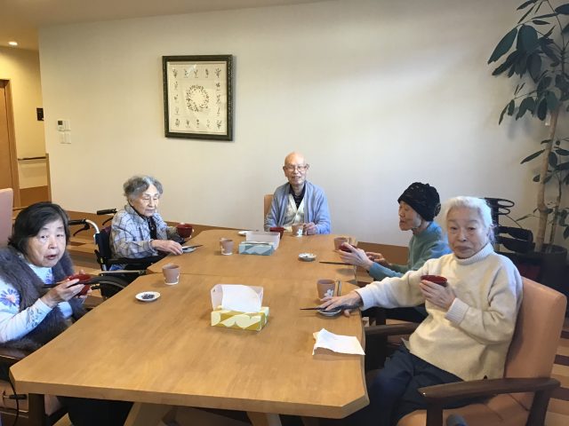 今日は鏡開きとゆうことで、厨房さんがお善哉を作ってくださり、皆様に食べて頂きました😋