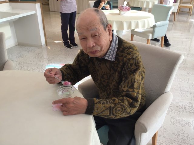 緑は緑茶の粉末で。ピンクはイチゴジャムを入れました。