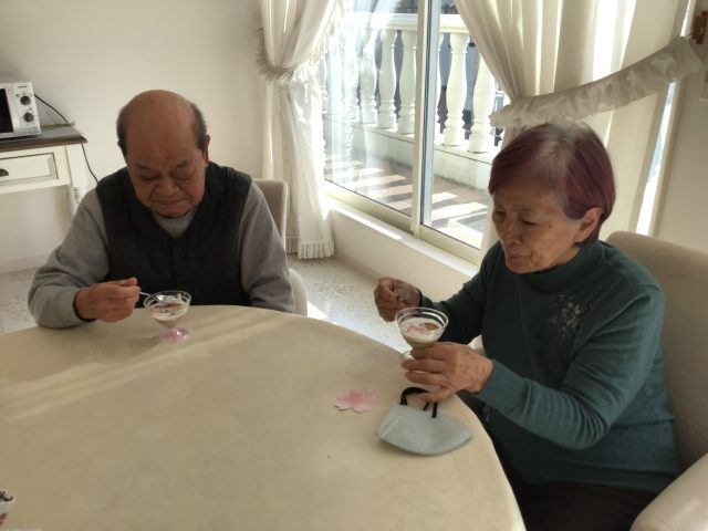 今日は一足早くひな祭り🎎にちなんで段ひし餅◇にちなんで3段ムースを作って食べて頂きました💛