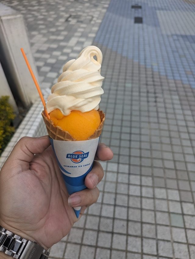 沖縄に到着して、すぐブルーシールのお店に立ち寄って早速食べ歩きです。