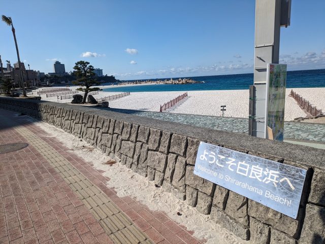本州で一番早く海開きがされると言われる、白良浜海水浴場へも行きました。