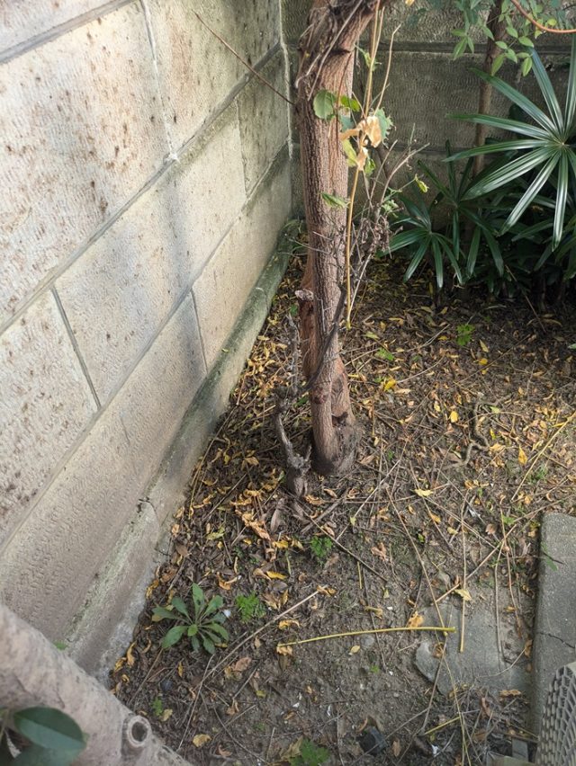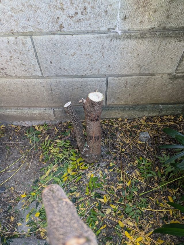 依頼内容として、お庭に生えている木を切ってほしいということでしたので、電動のこぎりを使用し、生えていた木を伐採させていただきました。
