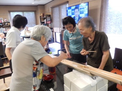 デイサービス松原では、ご利用者様に「流しそうめん」をお楽しみいただきました。