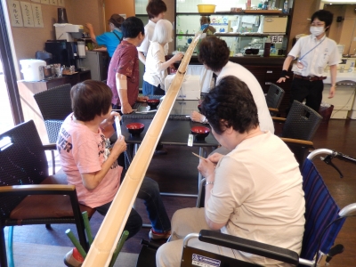 デイサービス松原では、ご利用者様に「流しそうめん」をお楽しみいただきました。
