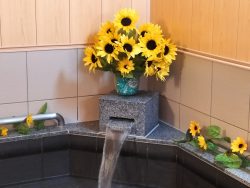 今週は期間限定で、浴室をひまわりで飾ってみたり、いつもと違う種類のシャンプーを何種類かご用意させて頂きました♨