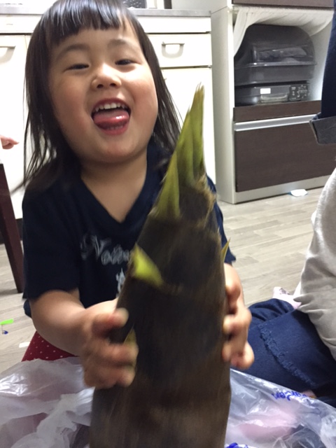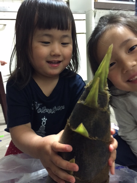 こんにちは この間 うちのミスターNから 竹の子を頂きました。 さっそく 家に帰り 子供達に見せると わあああ~~~っと 大喜び 長女も何事かと かけつけ 喜んでいました ありがとう~~~ミスタ~~