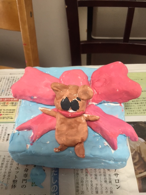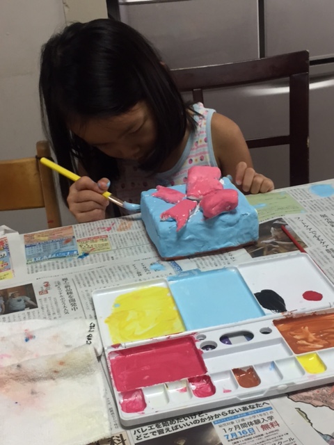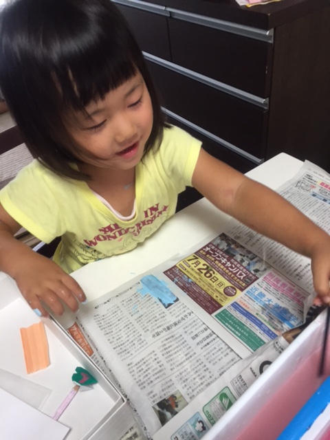 お兄ちゃんの 絵の具を借りて 色を塗りました