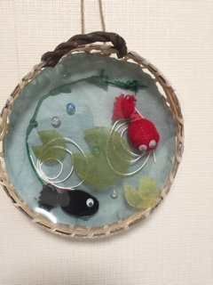 利用者様がデイで作ってこられた作品が、お部屋に飾られていました。