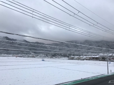 昨日は朝カーテンを開けると山が真っ白・・・