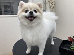 まるもこんなに晴れ晴れとした笑顔でお店では笑顔をふりまいていたのに、トリミングが大嫌いなので