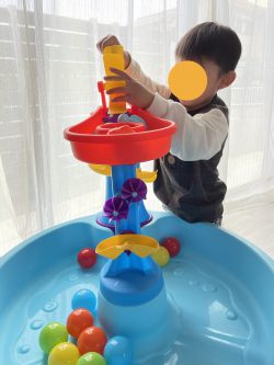本当は水を入れて遊びますが、水無しでも夢中で遊んでくれました。