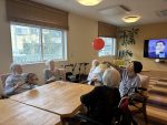 午後からレクで喫茶を楽しまれた利用者様を誘導しまして、みんなで風船バレーをしました。