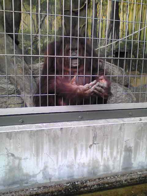 オラウータン 何か 頂戴と檻のあいだから 手を出すんですよ