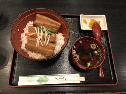 沖縄出発前に空港で食べたラフテー丼が美味しかったです。